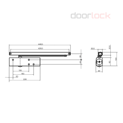 Доводчики верхнего расположения устанавливаются в верхней части двери (на дверное